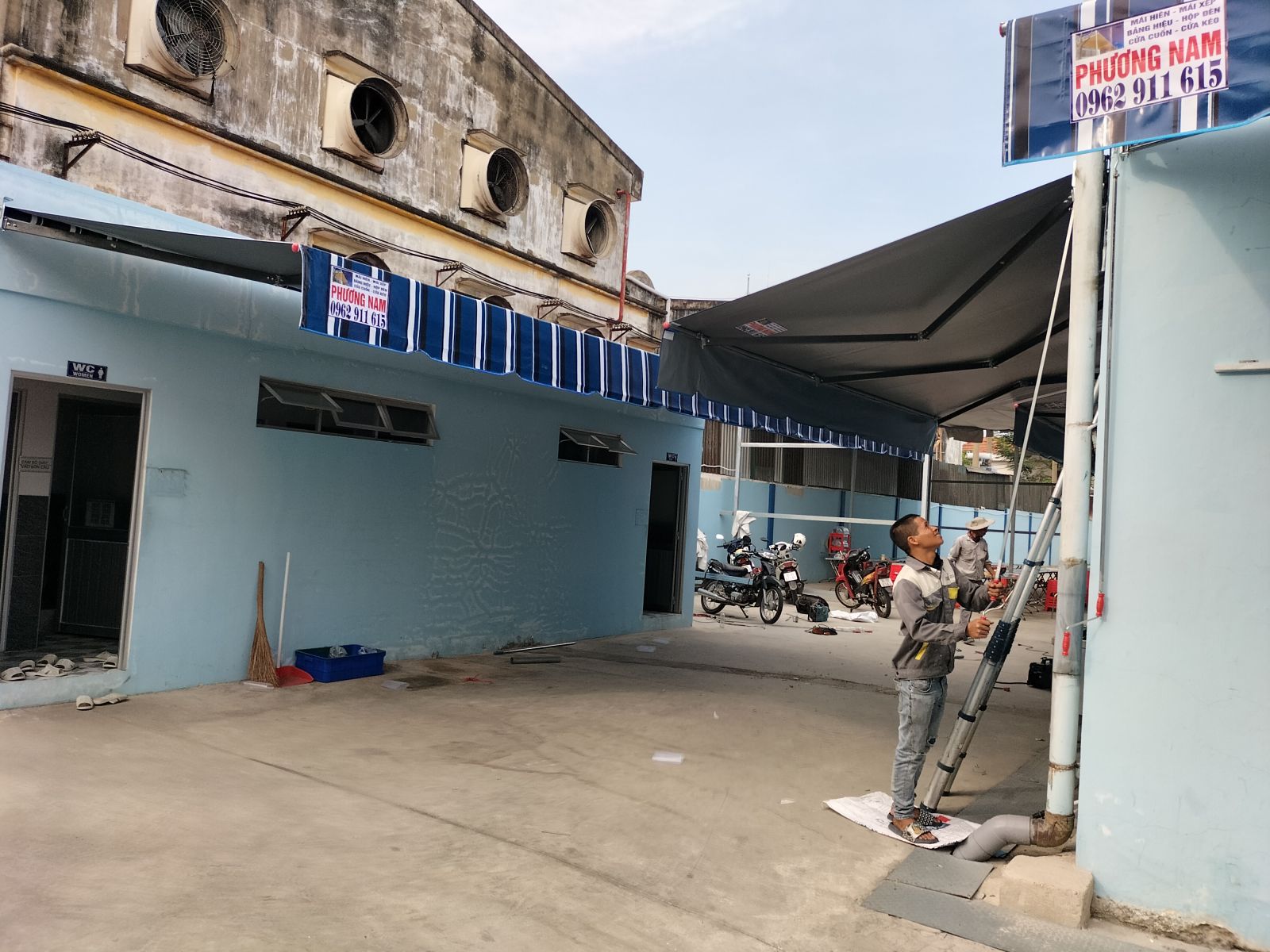 Mái xếp Phương Nam đã thi công bàn giao mái hiên quay tay ra 3,3m cho công ty ODA Việt Nam tại KCN Việt Hương